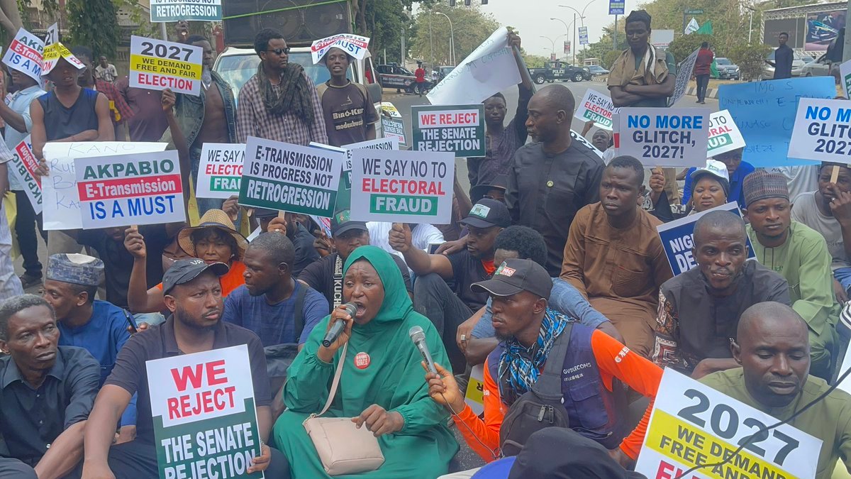 Nigerian youths are currently converging in Abuja for the “Occupy National Assembly” protest against the rejection of e-transmission of election results by the Senate.