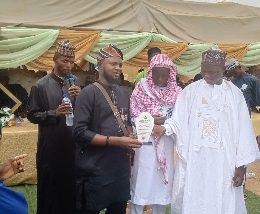 The Proprietor of FURQON Institute of Qur’an Memorisation and Islamic Studies, Ibadan, Oyo State, Ustaz Abdulrouf Abdulbaseet Abiodun, has presented a Merit Award to Mr Titilope Idris Adeleke, in recognition of his unwavering support for the institution and commitment to his child’s Islamic education.